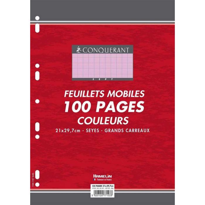 Feuilles mobiles roses 21 x 29,7 cm à grands carreaux pour le lycée et le collège de CONQUERANT Séyès. Fiche n° 400067101