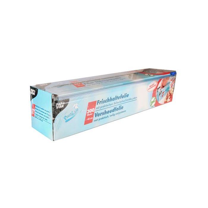 Gros rouleau de film plastique jetable 450 mm x 300 m de STARPAK. Fiche n° 10517