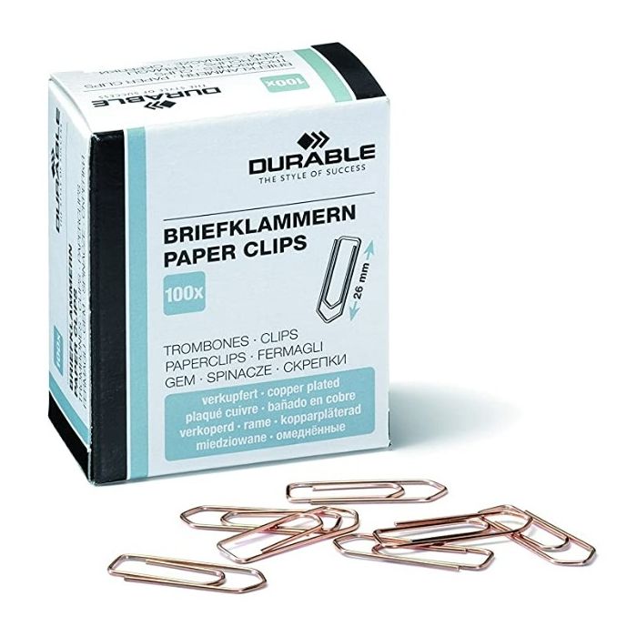 Boite de 100 trombones en métal - Cuivré - 26 mm DURABLE