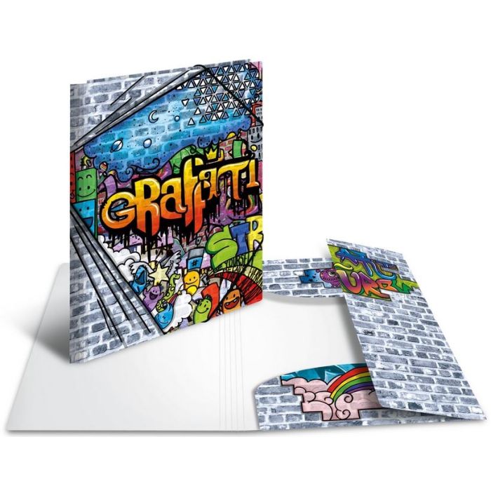 Pochette à rabats pour feuilles A4 avec des motif de GRAFFITI de HERMA. Fiche n° 19237
