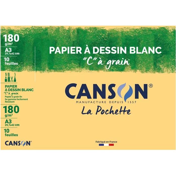 Papier à dessin Blanc C à grain A3 - 180 g CANSON Lot de 10