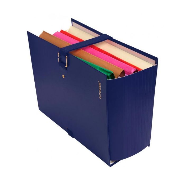Chemise à sangle couleur Bleu avec rabat EXACOMPTA Extensor pour dossier juridique, commercial et administratif. Fiche n° 22003E