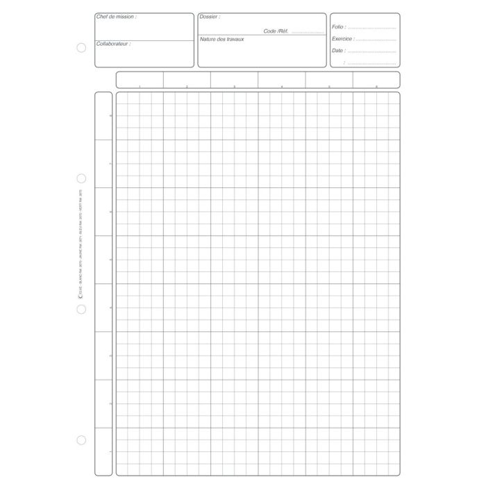 Bloc de 80 Feuilles de travail Blanches pour les Audits et Révisions comptables, notes de contrôle. Fiche n° 2670
