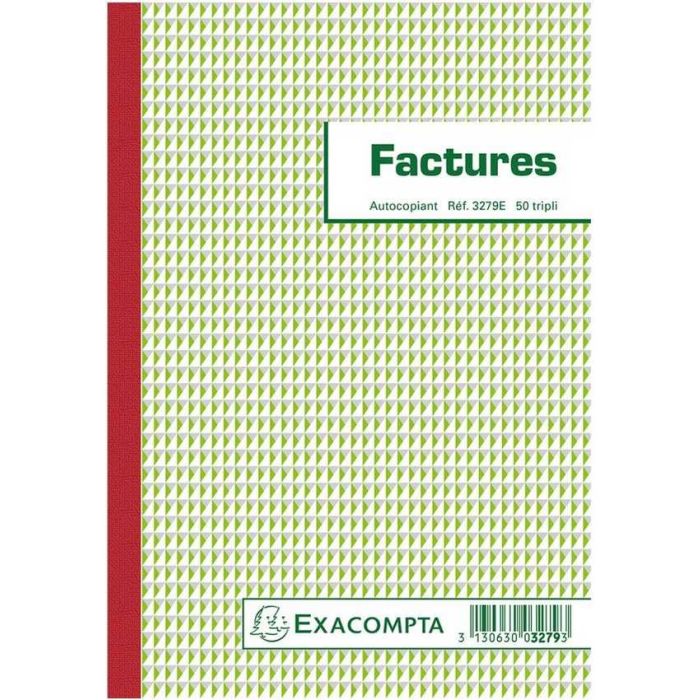 Carnet de Facturier avec TVA, feuillets A5 autocopiants tripli EXACOMPTA. Fiche n° 3279E