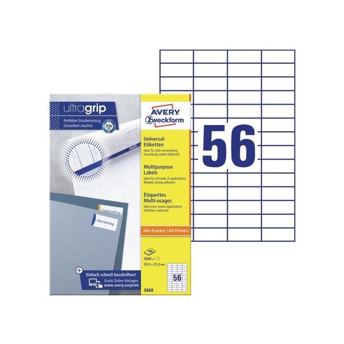 Étiquettes adhésives écologiques 52,5 x 21,2 mm pour un marquage de qualité AVERY. Fiche n° 3668