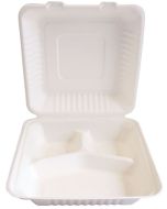 Barquette jetable avec 2 compartiments en canne à sucre biodégradable et compostable pour transporter les repas ou déjeuners NATURE STAR. Fiche n° 41225