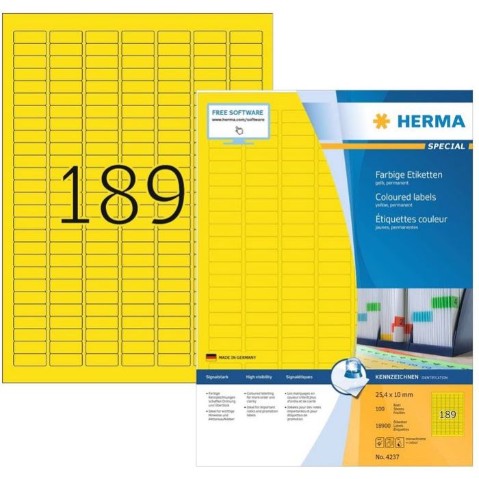 Étiquettes adhésives - 25,4 x 10 mm - Jaune HERMA Lot de 18900