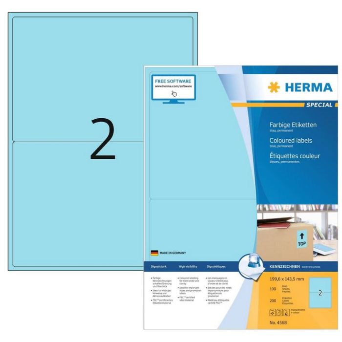 Étiquettes adhésives - 199,6 x 143,5 mm - Bleu HERMA Lot de 200