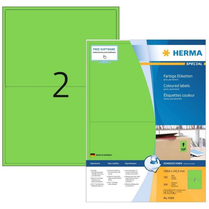 Étiquettes adhésives - 199,6 x 143,5 mm - Vert HERMA Lot de 200