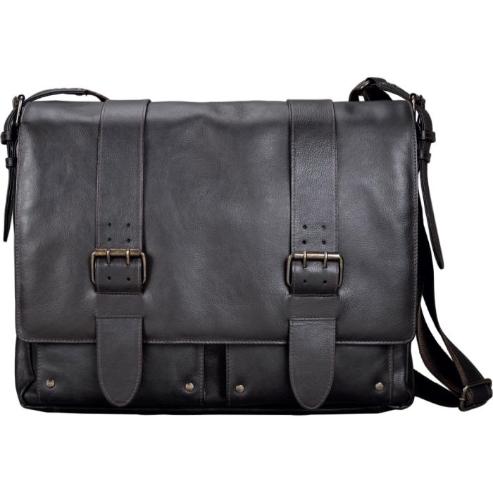 Besace à bandoulière en cuir marron foncé Tank de PRIDE et SOUL pour ordinateur 15 pouces et documents. Fiche n° 47135