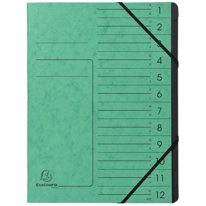 Trieur 12 compartiments à élastiques - Vert EXACOMPTA