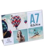 Porte-nom chevalet incliné verticla format A7 en cristal, idéal pour glisser vos étiquettes ou vos noms, d'EXACOMPTA. Fiche n° 87058HD