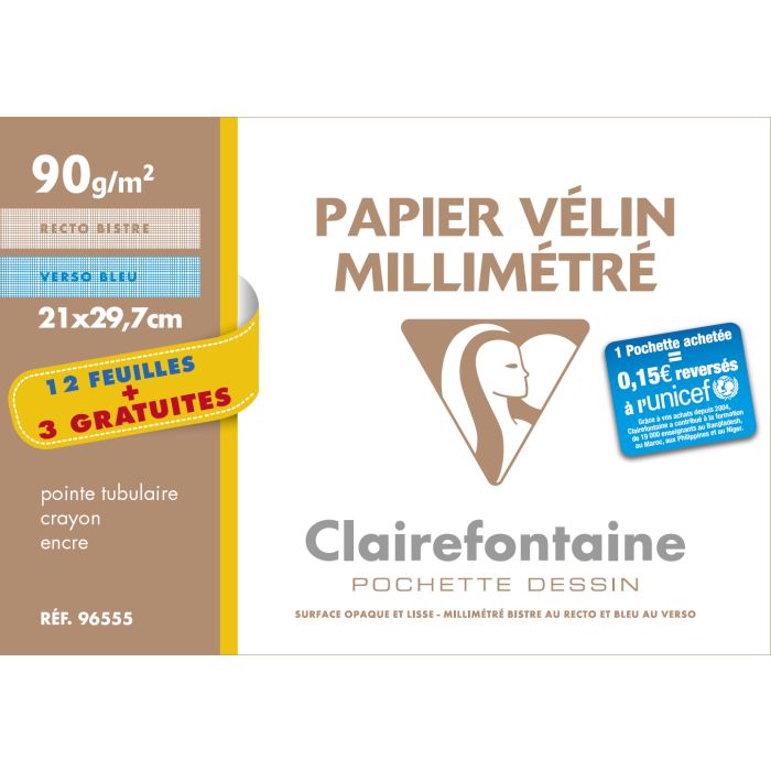 Pochette de feuilles de papier millimétré A4 pour dessins de précision de Clairefontaine. Fiche n° 96555C