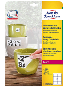 Étiquettes A5 ultra résistantes amovibles - 210 x 148 mm AVERY Lot de 40Référence : 7204718