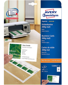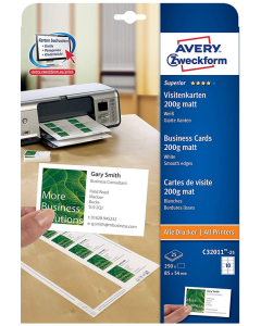 Cartes de Visite blanches - 200 g - 85 x 54 mm AVERY Quick et Clean Lot de 250Référence : 72320112