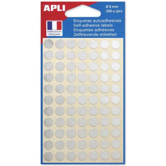Pastilles adhésives 8 mm - Argent APLI Lot de 308