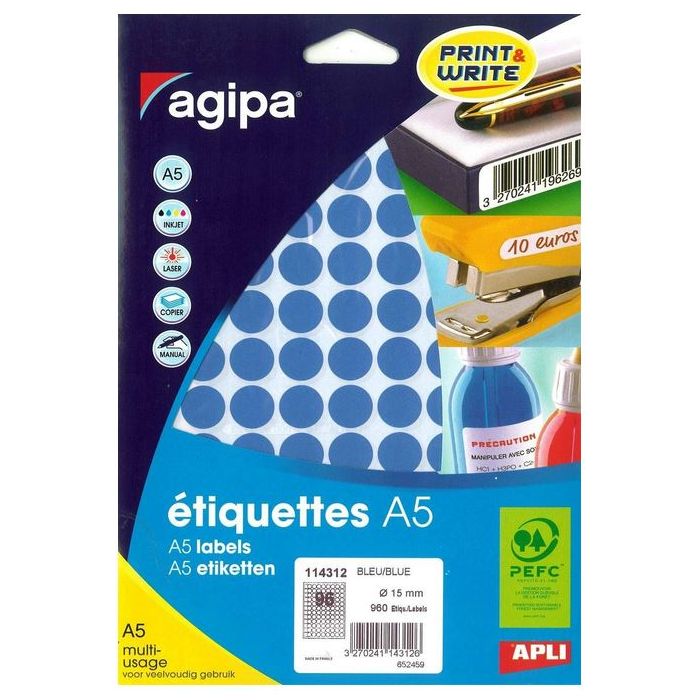 Pastilles adhésives 15 mm - Bleu AGIPA Lot de 960