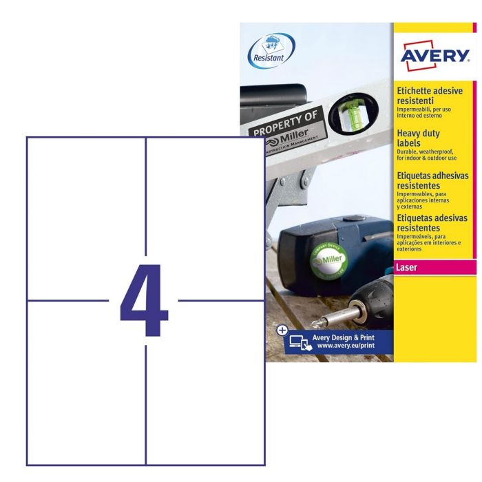 Étiquettes AVERY A6 105 x 148 mm adhésives, ultra résistantes pour marquer et étiqueter les produits et le matériel. Fiche n° L4719-20