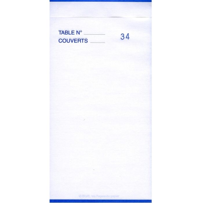 Carnet pour la prise de commandes dans un restaurant, bar, brasserie, etc. Feuillets autocopiants avec duplicata 165 x 85 mm. Fiche n° 2202
