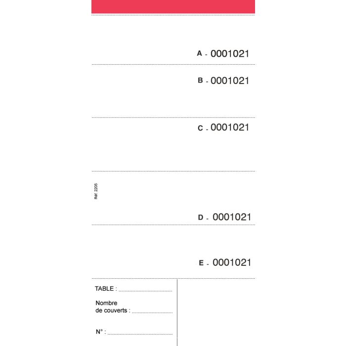 Bloc Brasserie pour la prise de Commande avec 5 coupons détachables 200 x 96 mm ELVE. Fiche n° 2205