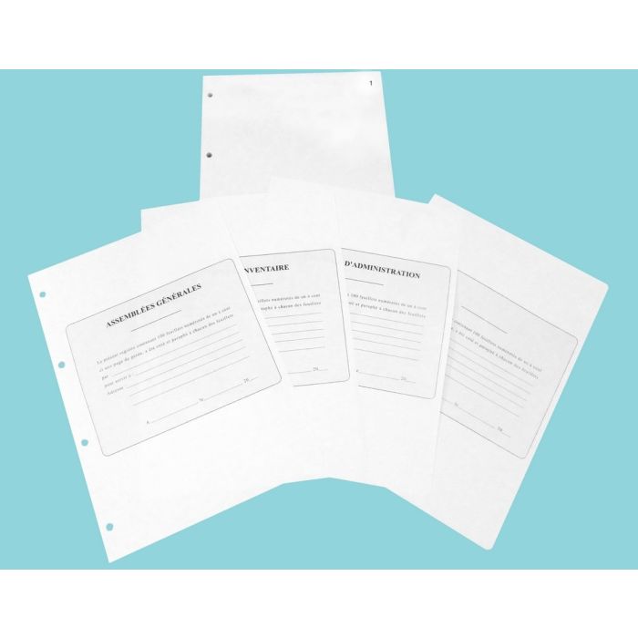 Recharge de 100 feuilles pour les Registres juridiques pour Procès verbaux de Société, Assemblées générales, Conseil d'administration, etc. Fiche n° 11014