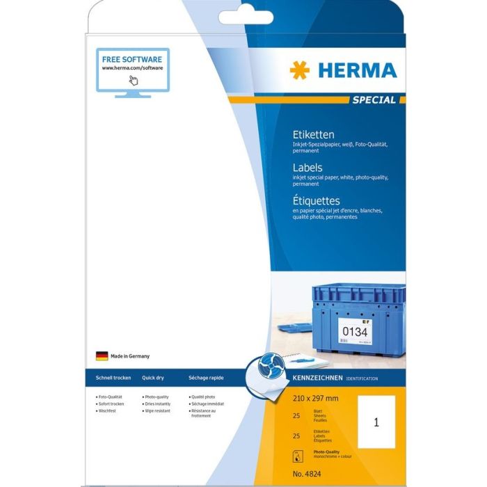 Étiquettes spéciales Jet d'encre - 210 x 297 mm HERMA Lot de 25