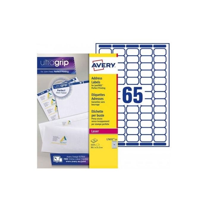 Mini-étiquettes - 38,1 x 21,2 mm - Blanc AVERY L7651 Lot de 1625