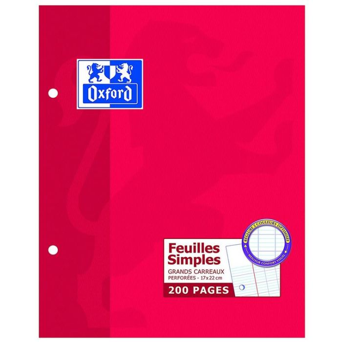 Feuilles simples Grands carreaux - 200 pages - 170 x 220 mm OXFORD